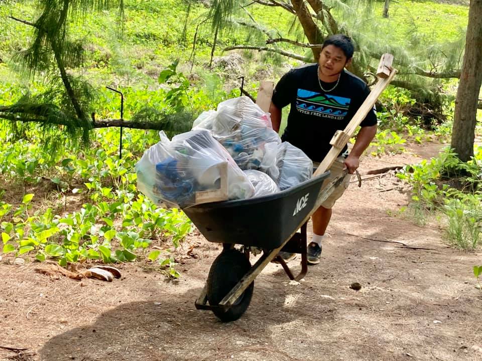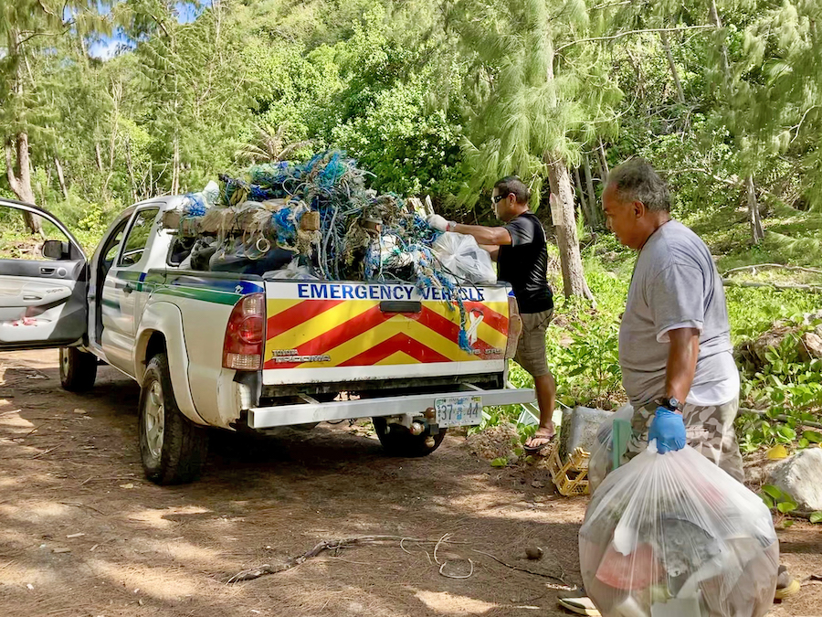 Collected trash is hauled away for disposal at the Marpi landfill, to prevent it from becoming marine debris.